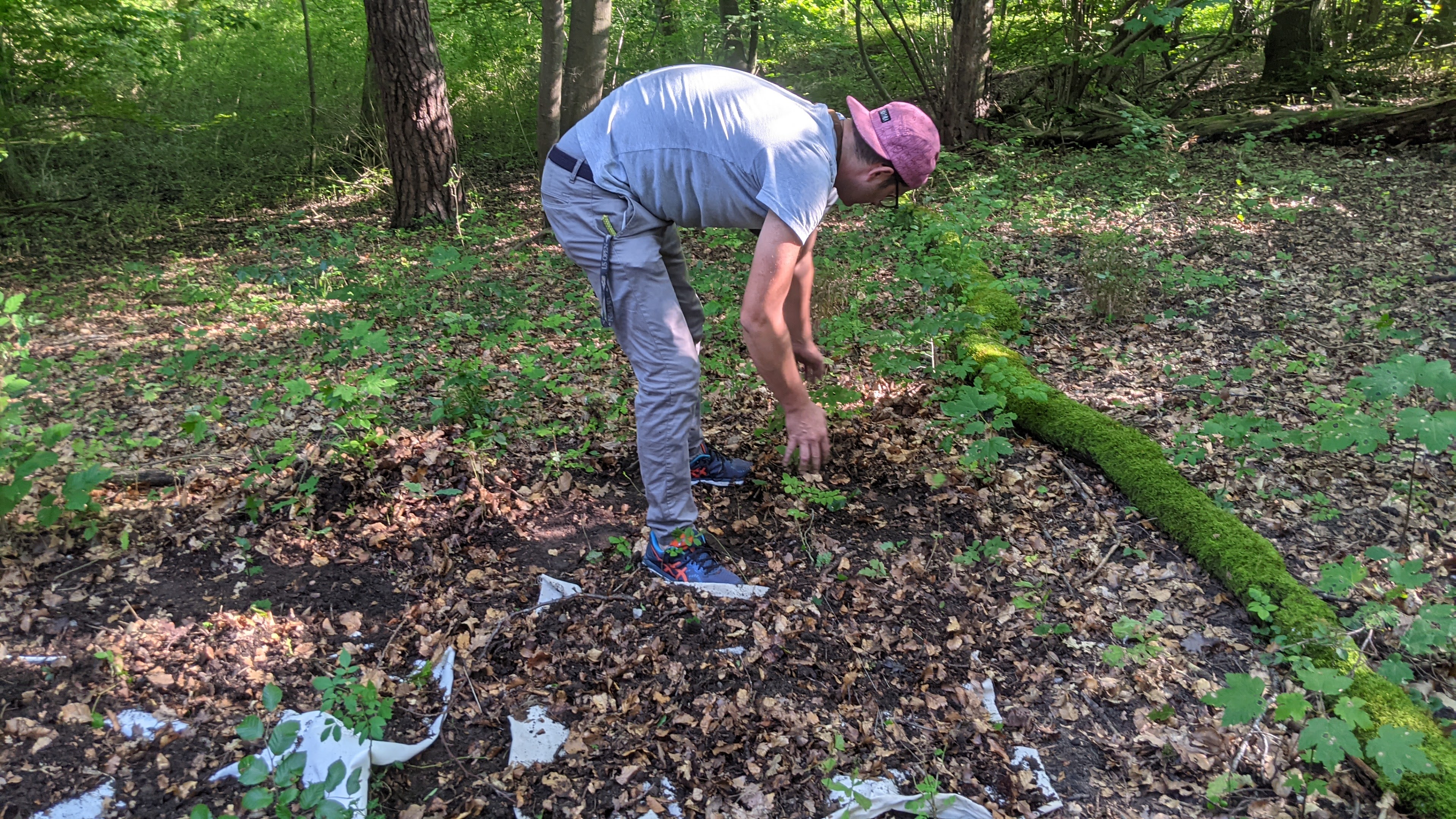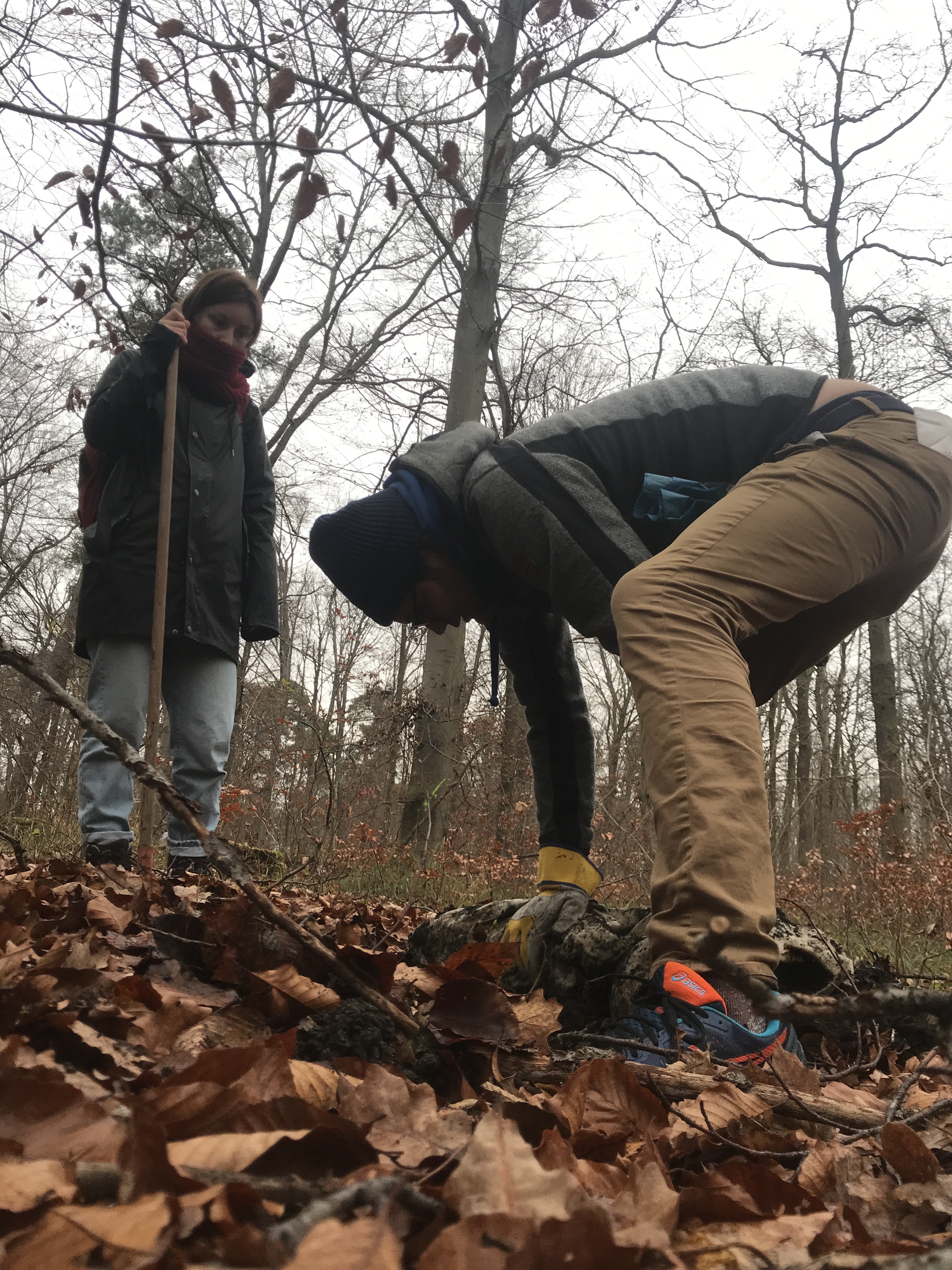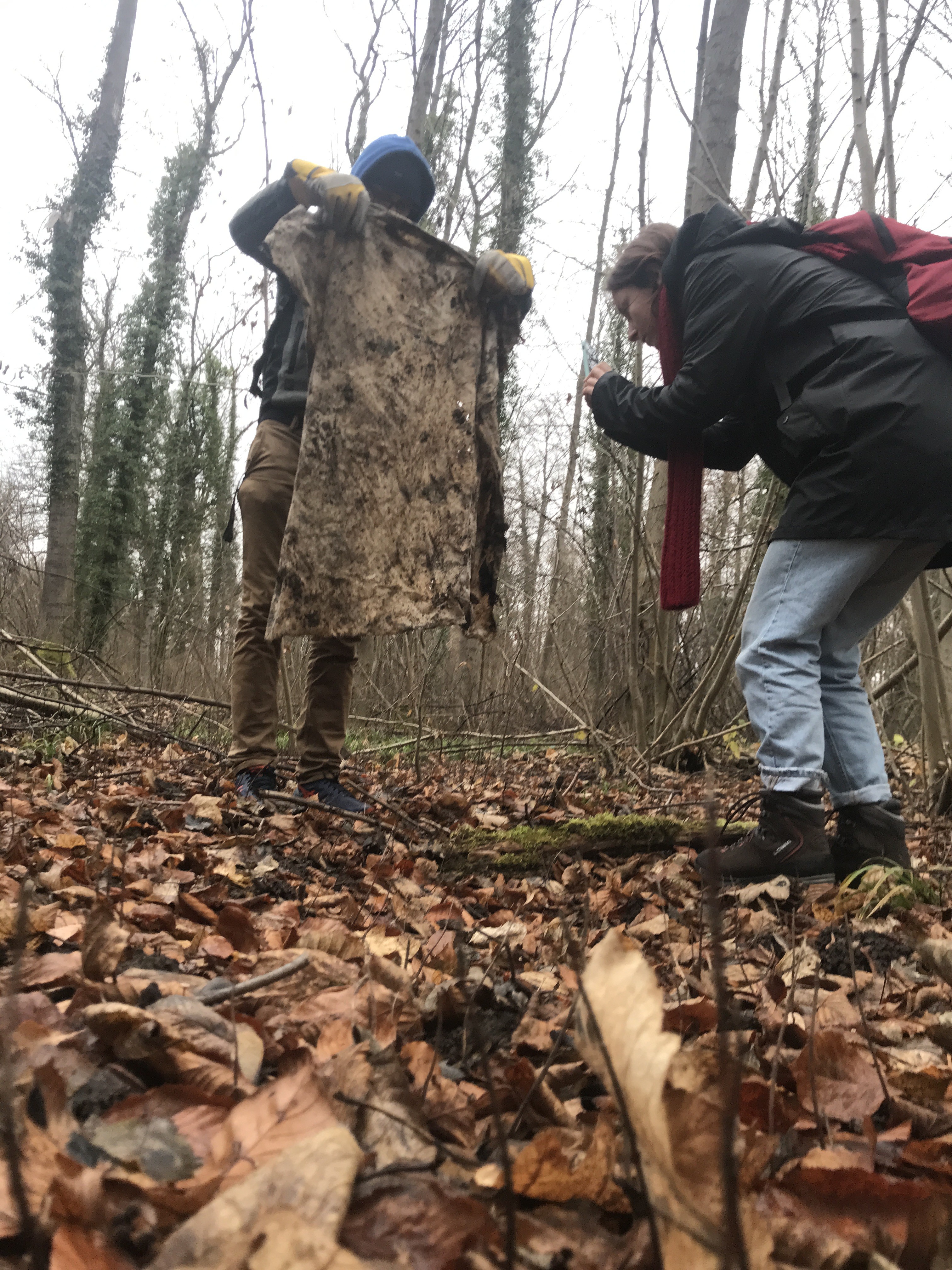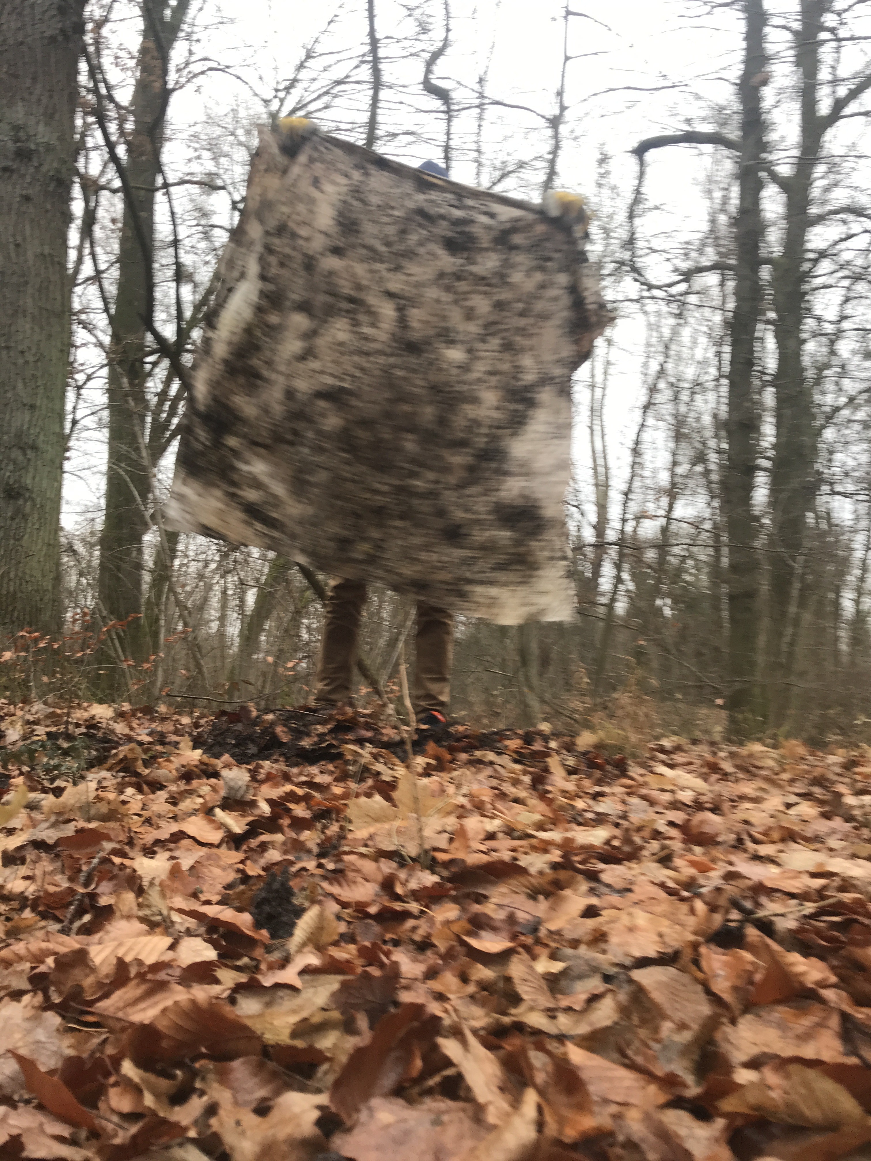 Leinentücher werden von mir eingegraben, ausgegraben und getrocknet. Der Prozess geht über mehrere Wochen und Monate und wird von mir genau schriftlich und bildlich dokumentiert. Zuerst werden unbehandelte weiße, großformatige Leinentücher in der Natur vergraben. Es macht ein großen Unterschied, ob das Leinentuch tief in die Erde eingegraben wird, mit Waldboden bedeckt wird oder im Sumpf oder auf einer Wiese ausgelegt wird. Nach einigen Wochen/Monaten werden die Leinentücher wieder ausgegraben. Sie beinhalten nun Spuren von Erde, Insekten und Pflanzen mit denen sie in Kontakt gekommen sind und nehmen teilweise deren Geruch auf, teilweise zersetzen sie sich an kleineren Stellen – sie sind vom natürlichen Boden „gezeichnet“. Die Leinwände hänge ich direkt im Freien auf. Dort werden sie nochmals den Naturgewalten ausgesetzt. Je nach Witterung (sonnig, heiß, trocken oder kalt, nass, windig) verändert sich die Beschaffenheit der Leinwände (Farbe, Textur) auch hier wieder. Das Besondere an dieser Arbeit ist, dass je nach Ort, Zeitdauer und Wetterverhältnissen sehr verschiedene Ergebnisse entstehen. Die genaue Dokumentation meiner Arbeit ist ein Versuch, meine nähere Umgebung und Umwelt zu kartografieren.